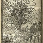 According to the book, in J.W. Buel’s “Land and Sea” (1887) there is the description of the “Ya-te-veo” tree. It is said to have long serrated vines and a short, thick trunk. The long vines are laid out all around the tree. The dagger-like teeth flat on the ground. When an unsuspecting victim, usually a medium-sized mammal, steps on its vines, they rise up like serpents and entangle the victim completely: