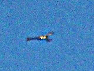 In one of the most unusual recent UFO sightings, a scorpion-shaped object was spotted in the skies above Los Cristianos, Spain on Saturday, August 21, 2011. Jamie O’Rourke saw the unidentified flying object near his home around 8:00am and managed to snap several photos before the object disappeared.