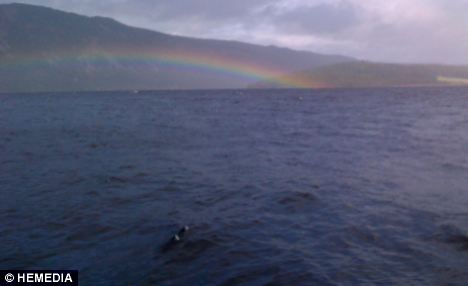 ‘There was a rainbow so I got my camera out to take a photo and noticed this really large dark shape in the loch with two humps that were barely out of the water.