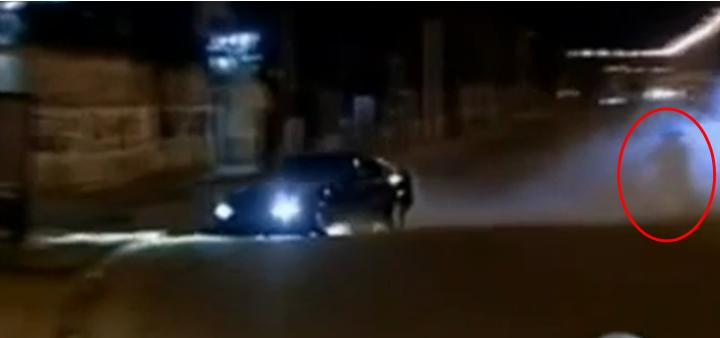 If you look where the car ends up, you can see that it just misses an obstacle that could possibly have thrown the driver through the windshield or worse. Did this “helper” redirect the young man enough for him to avoid the obstacle? Are we seeing a mere dust shadow of the horse-tender in another cars headlights? Is there even something there at all? Could this be just a hoax?