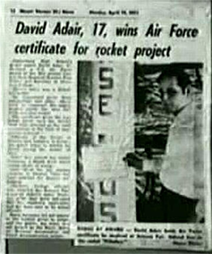 In high school David was already building sophisticated rockets on a par with some of the biggest corporations in the field at that time. He was winning contests including The Most Outstanding in the Field of Engineering Sciences run by the US Air force. By this time David was receiving accolades in newspapers far and wide. It wasn’t long before the federal government, or more specifically, the DoD stepped in.