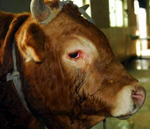 Superstition is rampant in many areas of the world and may have played a role here. Then again, someone could have just photographed a bull with an eye irritation and made the whole dastardly story up.